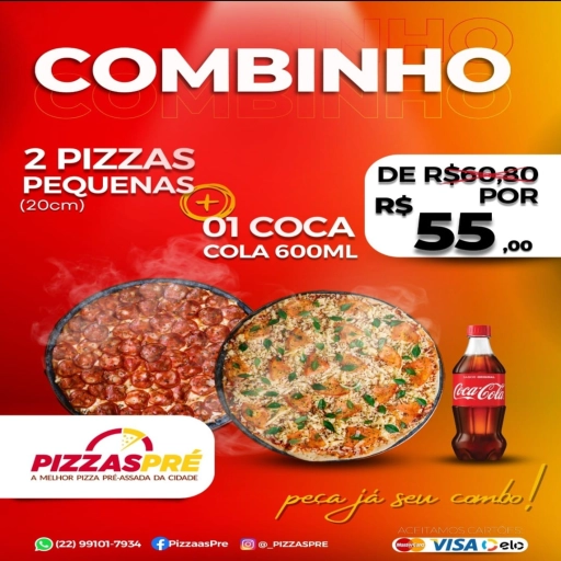 2 Pizzas pequenas (20cm) + 1 coca 600ml