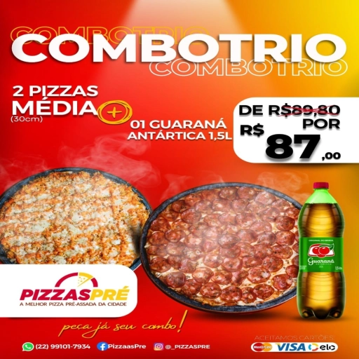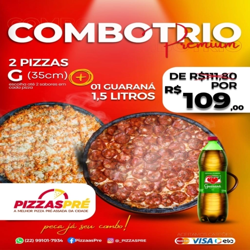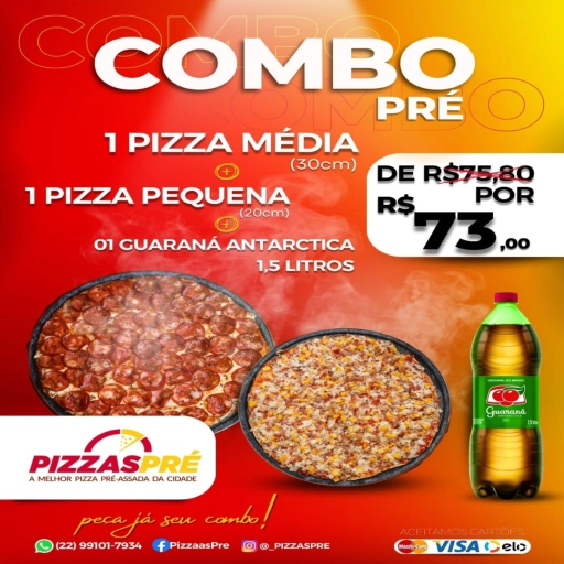 1 pizza média (30cm) + 1 pizza pequena (20cm) + 1 Guaraná 1,5l